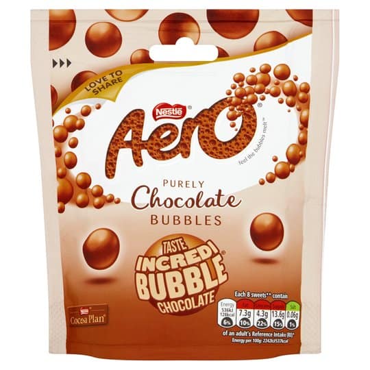Aero Milk Chocolate Bubbles are uplifting little balls of bubbly milk chocolate, which are perfect for sharing with friends and family! What makes Aero so deliciously special? It’s the chocolate bubbles that are designed to melt effortlessly in your mouth. Aero is a much-loved chocolate worldwide and is renowned for its unique bubbly texture.