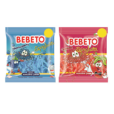 Little packets of Bebeto fizzy spaghetti in blue raspberry and strawberry