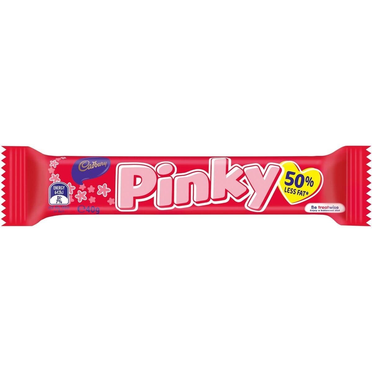 The Cadbury Pinky is a confection featuring a soft pink marshmallow centre, a layer of golden caramel, and a coating of Cadbury milk chocolate. Originating from Australia and New Zealand, the Pinky bar is known for its playful, light texture that balances chewy marshmallow with smooth caramel and creamy chocolate, providing a sweet and nostalgic treat that is also notable for containing 50% less fat than other Cadbury bars
