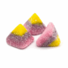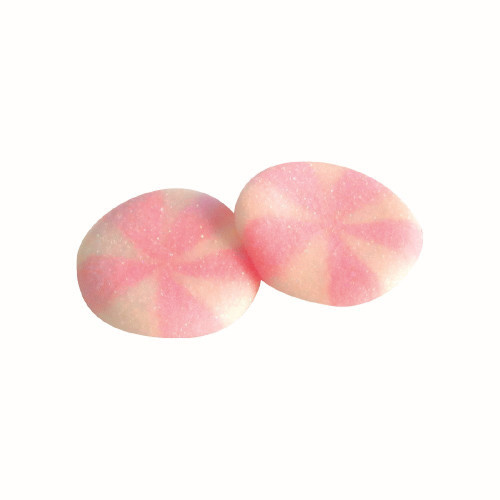 Chewy, fizzy, white and red disc-shaped sweets. A fun colourful treat