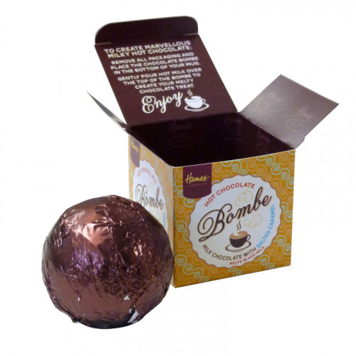 Hames Hot Chocolate Bombe – Milk Chocolate With a Shot of Salted Caramel Flavouring Presented in Individual Boxes Rainforest Alliance Cocoa