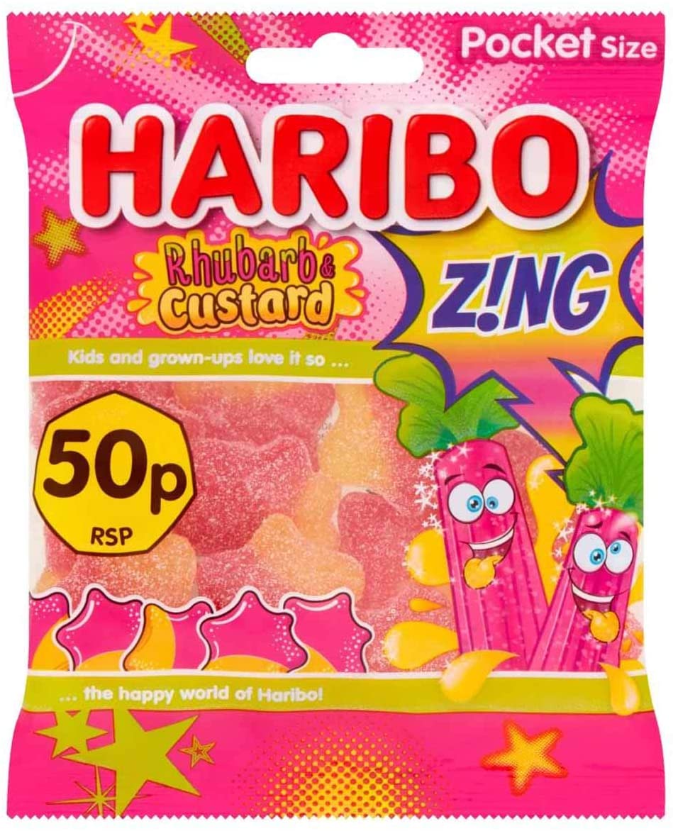 Rhubarb & Custard Zing flavour gummy sweets from Haribo