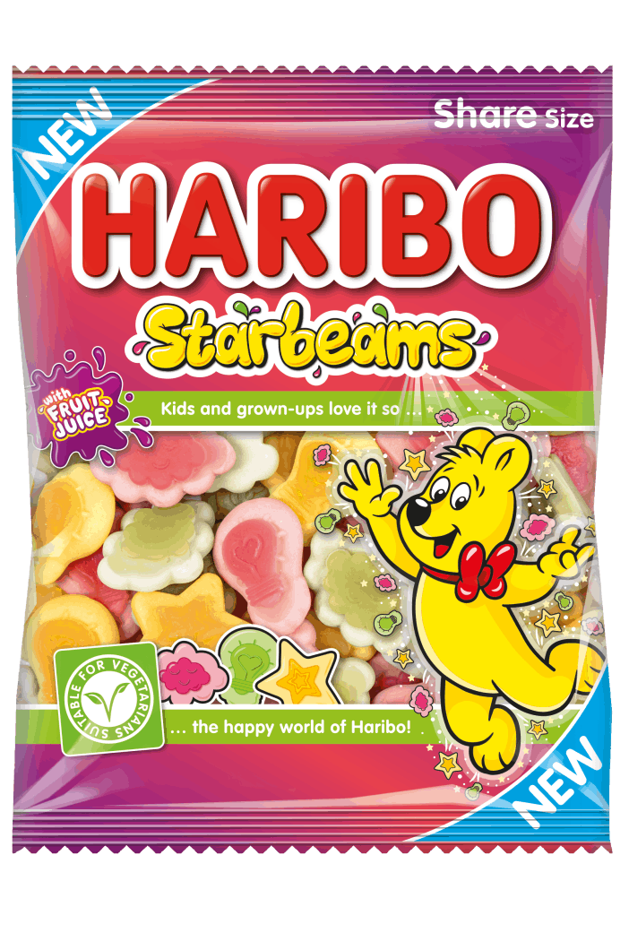 Soft and fruity, Haribo Starbeams is a mix of soft jelly and foam sweets in 3 fruity flavours with added fruit juice; Cherry, Apple and Lemon. These 160g bags are perfect for sharing!