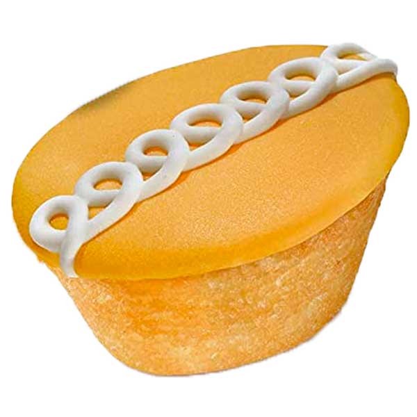 Delicious, spongy cupcakes filled with a light, sweet creme filling with an orange fudge top and white icing swirl! The perfect quick pick me up. Imported from the USA.