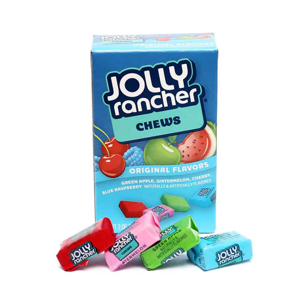 jolly rancher chews are small boxes filled with chewy sweets produced in America by Hershey.