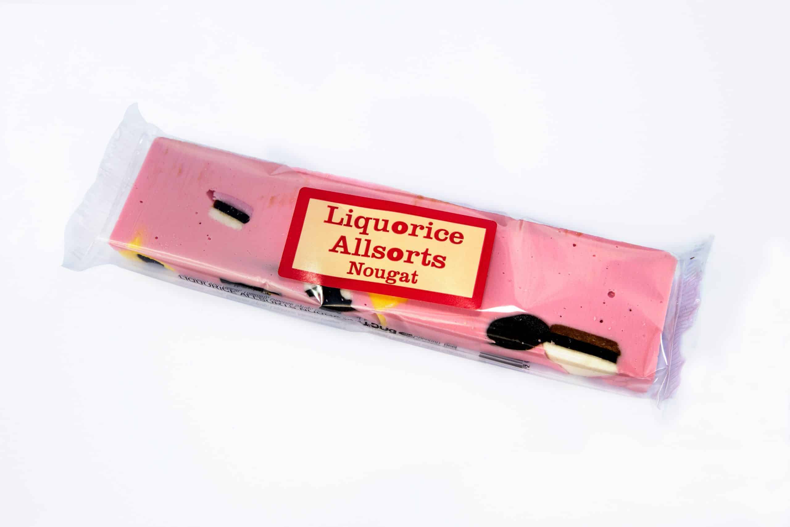 Delicious Liquorice allsorts nougat bars made by the Real Candy Company. These contain liquorice allsorts embedded within the nougat. Perfect for any liquorice lover!