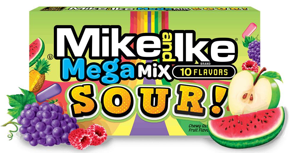 Mike & Ike Mega Mix Sour delivers 10 mouth-puckering flavours with a sour kick, guaranteed to take your tastebuds to another level. Flavours include, sour zappin’ apple, sour slammin’ strawberry, sour screamin’ cherry, sour juicy lemon, sour green limeade, sour pucker punch, sour power pineapple, sour watermelon wipeout, sour grape soda and sour shockin’ raspberry!