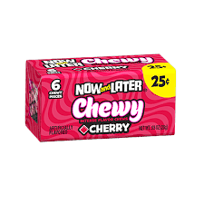 Bite-sized pieces of taffy that last a really long time. Kids started to go wacky for Now & Later’s in 1962. Today they’re still tugging away on these morsels of yumminess. Bright and bold. Tiny and tasty. An impossible amount of fun packed into bite-sized, shareable candy squares
