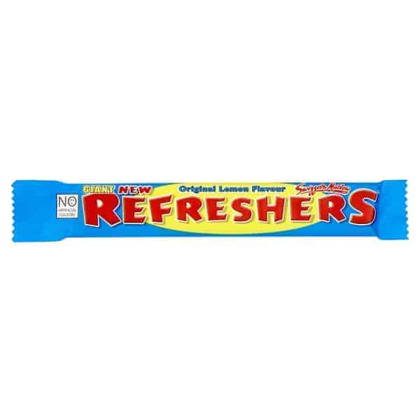 Giant Refresher Chew Bar – the original lemon flavour with a fizzy sherbet centre that makes your mouth tingle. Made by Swizzels Matlow who also make those lovely parma violets and double dips.Also available in the original sweet shop box; the perfect giftApproximate length of each bar 13cm by 3cm