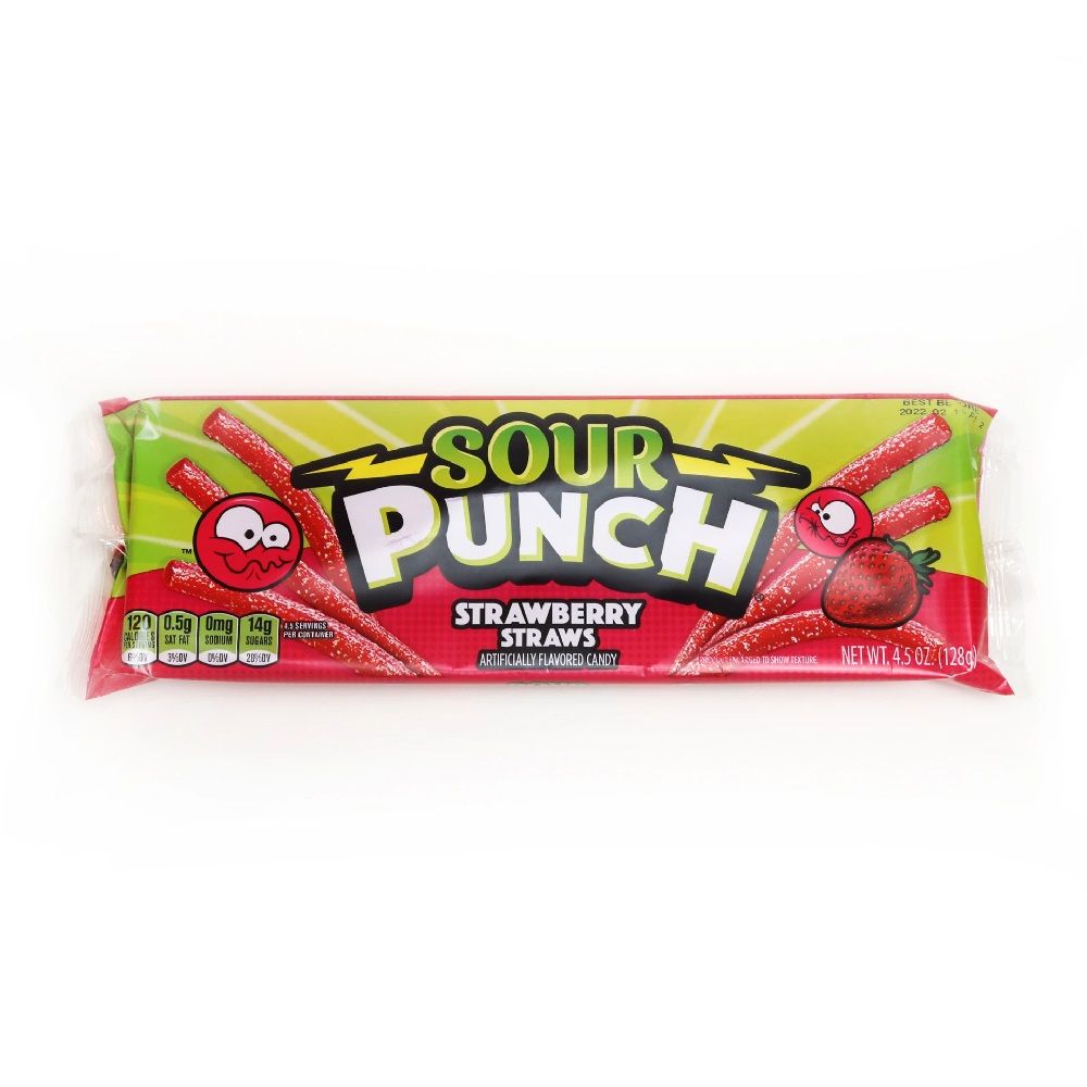 Take a walk on the sour side. The Sour Punch Strawberry Straws are soft and chewy, fruit flavoured liquorice straws with a unique sour coating that packs a punch! This American treat is bursting with mouth watering watermelon flavour, why not use a straw for sipping your favourite beverage to add a tangy twist.