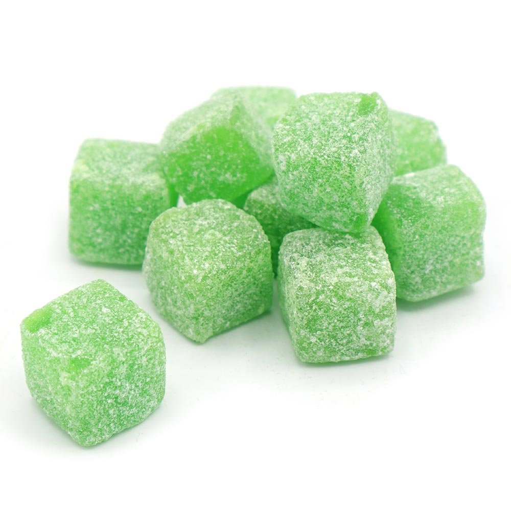 Apple flavour hard boiled sweet with a chewy centre and a tangy, sour crystallised sugar coating