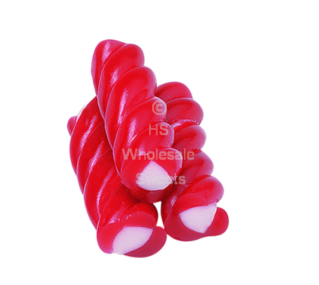 Strawberry flavoured twisted liquorice pieces with a fondant filling