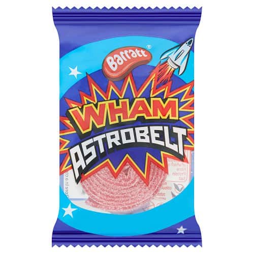 The classic Wham tongue-tingling, chewy bar has been re-created into a delicious raspberry flavoured gummy belt! Still with that sour kick, the gummy belt is dusted with a sour sugar, giving your taste buds a burst of tangy flavour. The Barratt Wham Astrobelt is the perfect pocket money sweet for kids to enjoy!